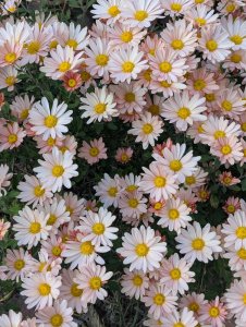 The rubellums caught the eye of Alexander Munnings, a Connecticut breeder and nurseryman. Munnings promptly crossed them with other mum species. The result was the Korean chrysanthemums, which are distinguished by a daisy-like appearance and a growth habit that is looser and less formal than the common garden center varieties. Korean chrysanthemums are generally later bloomers, bringing down the curtain on the fall growing season. Masses of them bloom each fall around Halloween in the Conservatory Garden at New York’s Central Park.